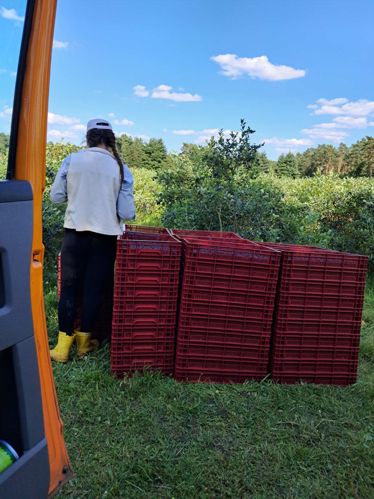 Вид оплати: Акорд — оплата залежить від вашого виробітку, наприклад, від кількості зібраних ягід (1,5-1,80 євро за 1 кг зібраних ягід). Також може бути частина роботи з погодинною оплатою(сортування, допомога зі збиральною машиною, підрізання кущів).